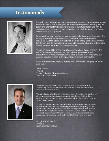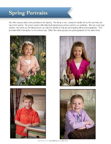 • FULLY STAFFED - We promise a stress free, on time, photography day. We bring the necessary equipment, multiple sets, and trained staff to get your students photographed and back to class as soon as possible. • GIVE BACK MORE - We believe in supporting our Customers, Schools and Community.