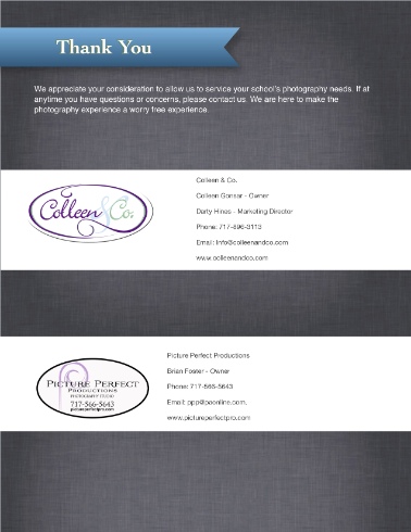 Colleen & Co. & 3P LTD believes all schools, regardless of the size, deserve a high level of customer service and images that are steps above the large national companies. We are committed to listening to the individual needs of the faculty and parents to custom design our photography days to meet everyone’s needs.